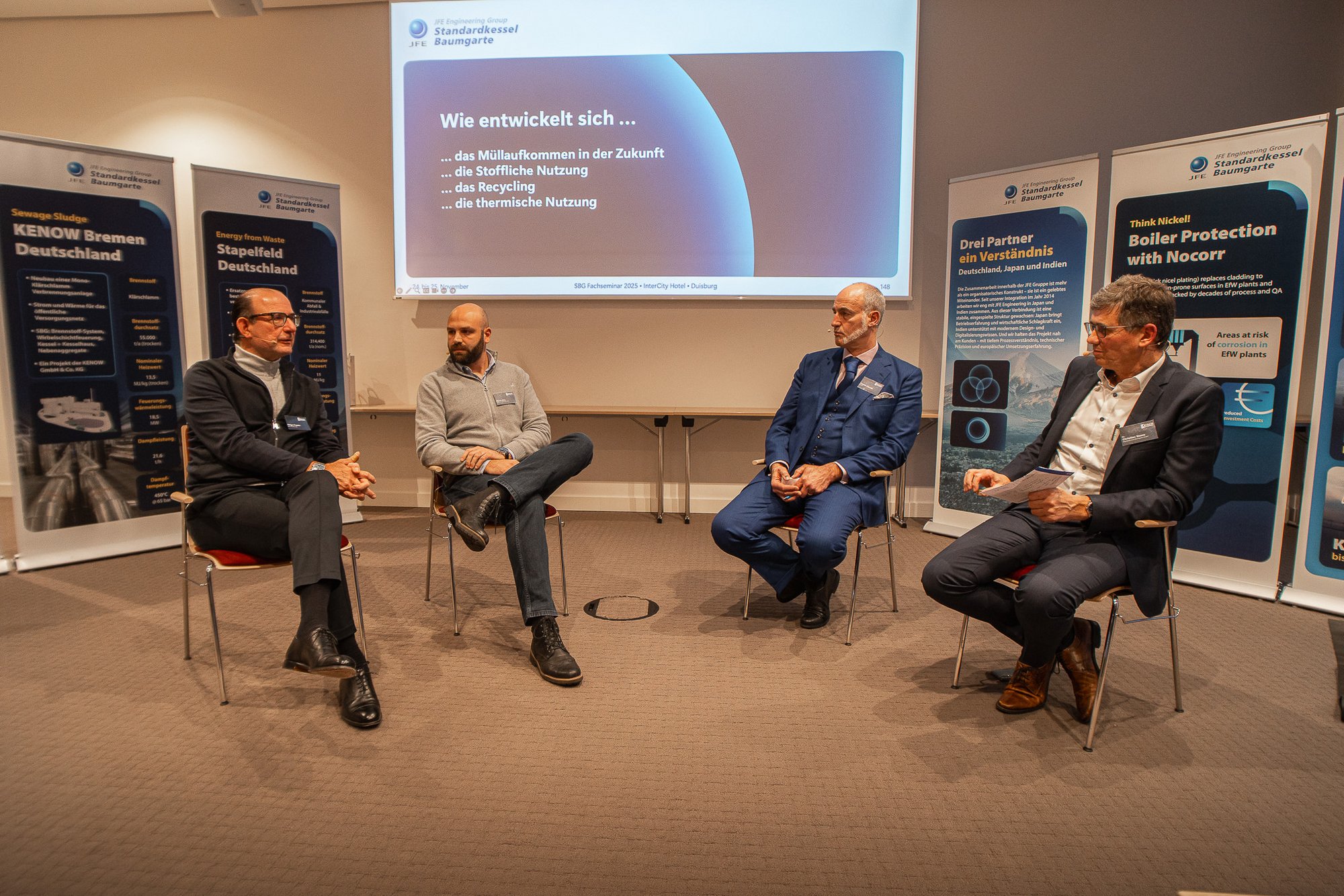 Der erste Seminartag endete, wie im Vorjahr, mit einem inspirierenden Live-Podcast zum Thema „Reststoff-Nutzung der Zukunft – wohin führt der Weg?“. Am zweiten Tag lag der Fokus auf praxisnahen Einblicken: Fachvorträge beleuchteten flexible Wirbelschichttechnologien, Wege zu negativen CO₂-Emissionen (BECCS), die Dekarbonisierung von Zünd- und Stützbrennern, den sicheren Umgang mit Lachgas-Behältern sowie über 20 Jahre Betriebserfahrung mit galvanischer Dickschichtvernickelung.